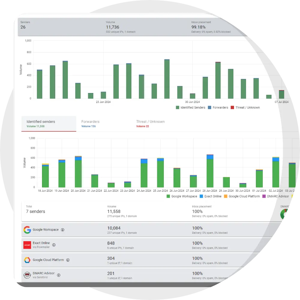 Comprehensive reports on DMARC compliance and email health.